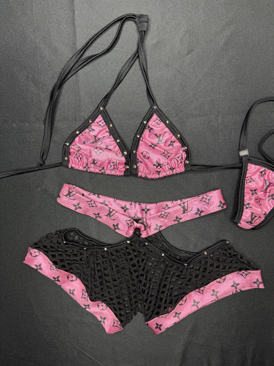 Metallic Baby Pink Designer Bikini Top/Shorts Lingerie Outfit