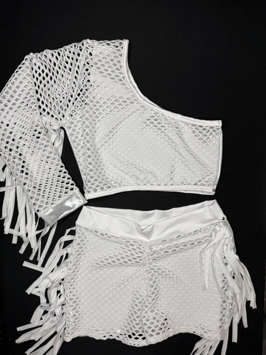 Microdot Silver/White Fringe Single Sleeve/Shorts Two-Piece Lingerie Outfit