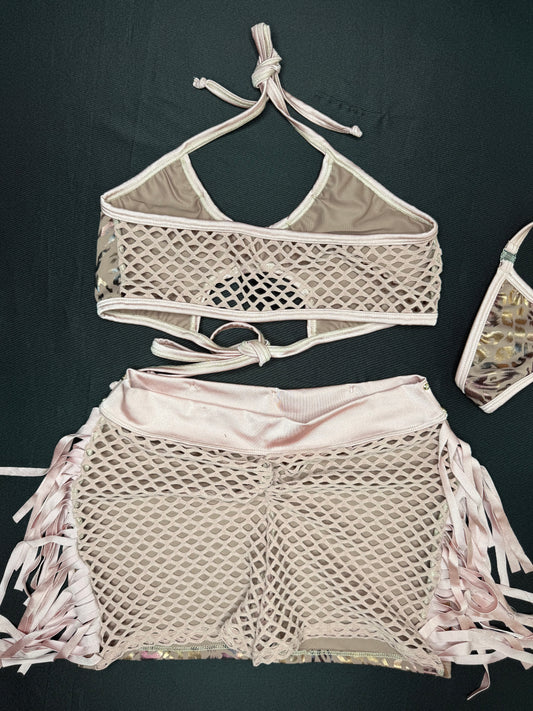 Metallic Purple/White Fishnet Tube Top/Shorts Lingerie Outfit