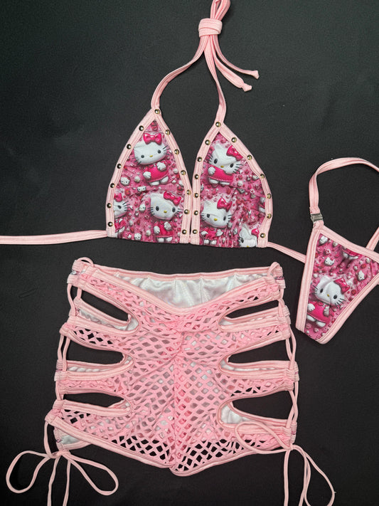 Baby Pink/Pink Kitty Two-Piece Bikini Top/Shorts Lingerie Outfit