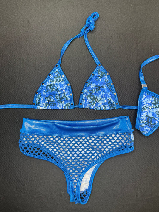 Microdot Blue/Royal Blue Bikini Top/High Waist Shorts Two-Piece Lingerie Outfit