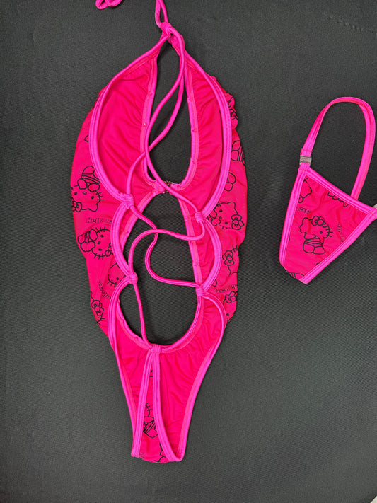 Hot Pink One-Piece Kitty Lingerie Outfit