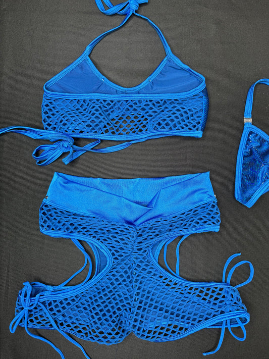 Mystic Blue/Royal Blue Fishnet Sports Bra/Shorts Two-Piece Lingerie Outfit