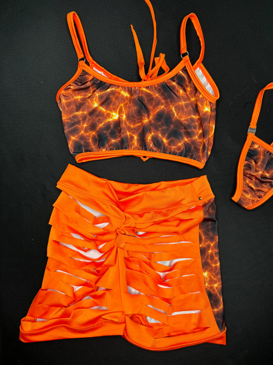 Orange Two-Piece Shorts Bra/Ripped Shorts Lingerie Outfit