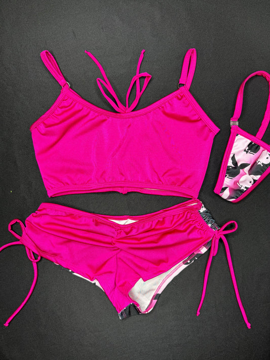 Hot Pink Bunny Designer Two-Piece Shorts Lingerie Outfit