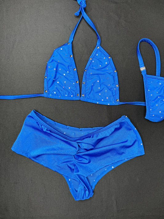 Royal Blue Mesh Bikini/Shorts Two-Piece Lingerie Outfit