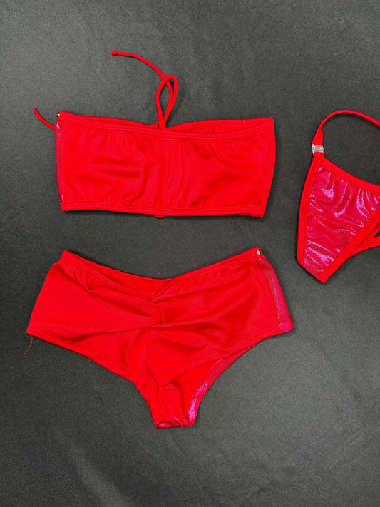 Metallic Red Tube Top/Shorts Two-Piece Lingerie Outfit