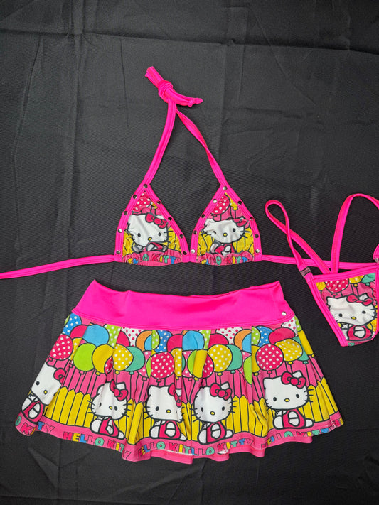 Kitty Spandex Bikini Top/Skirt Two-Piece Lingerie Outfit