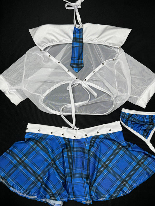 White/Blue Plaid School Girl Skirt Lingerie Outfit