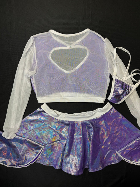 Microdot Lavender Two-Piece Long Sleeve Fringe Top/Skirt Lingerie Outfit