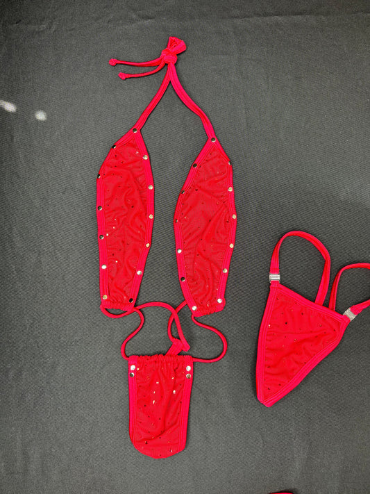 Red Mesh Two-Piece Sling-Shot Skirt Lingerie Outfit