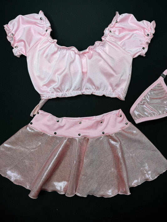 Mystic Pink/Baby Pink Two-Piece Skirt Lingerie Outfit