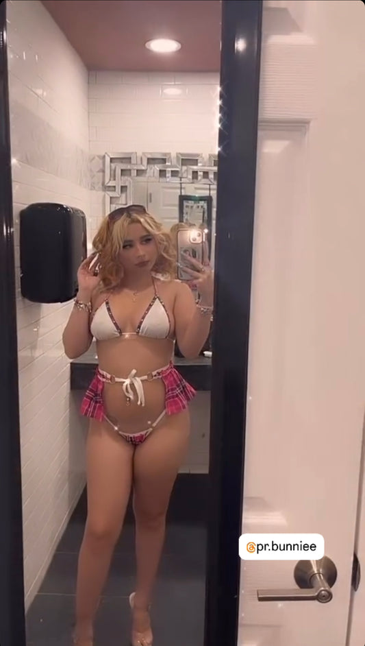 Hot Pink School Girl Bikini Top Skirt Outfit