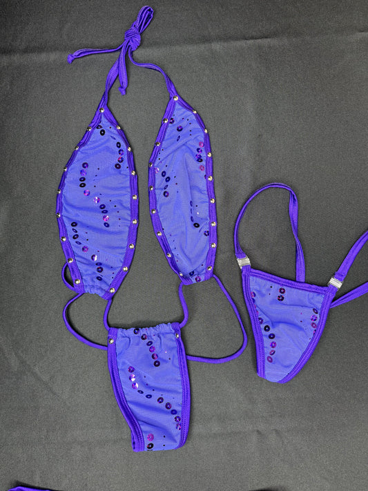 Two-Piece Purple Mesh Sling-Shot Skirt Lingerie Outfit