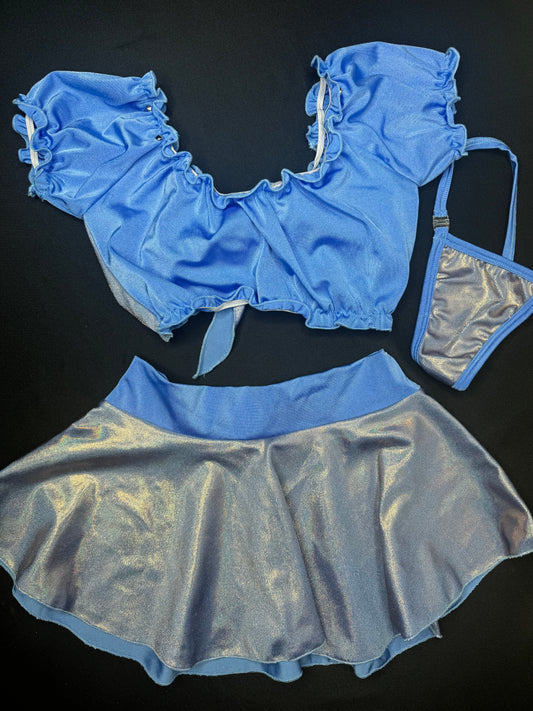 Mystic Periwinkle Blue Two-Piece Skirt Lingerie Outfit