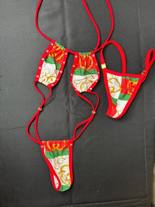 Exotic Dance Wear Sling Shot Outfit Red/Green Lingerie