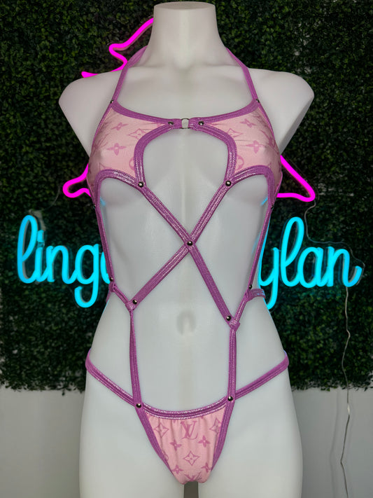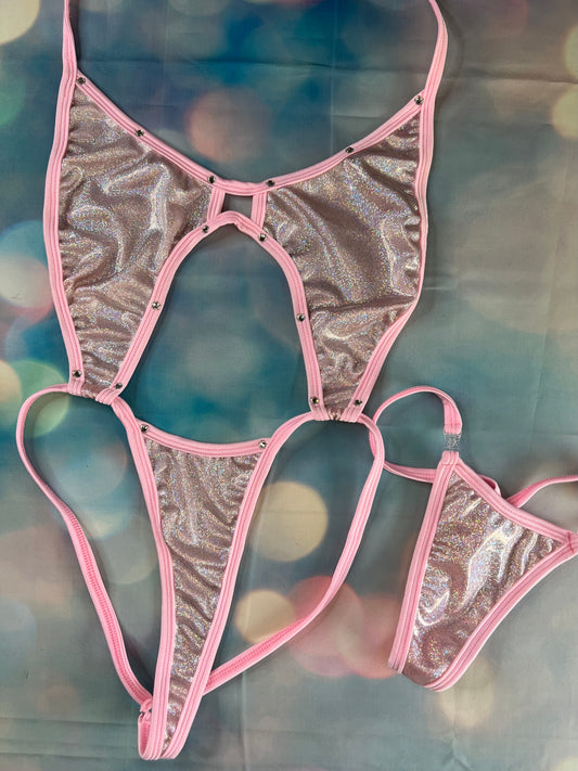 Baby Pink/Shimmer Lavender One-Piece Exotic Dancer Outfit