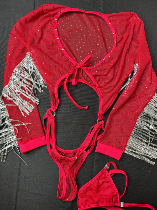 Black/Red Sparkle Mesh One-Piece Stripper Outfit