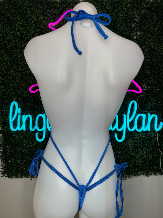 Metallic Blue Exotic Dance Wear Sling-Shot Outfit Sexy Lingerie