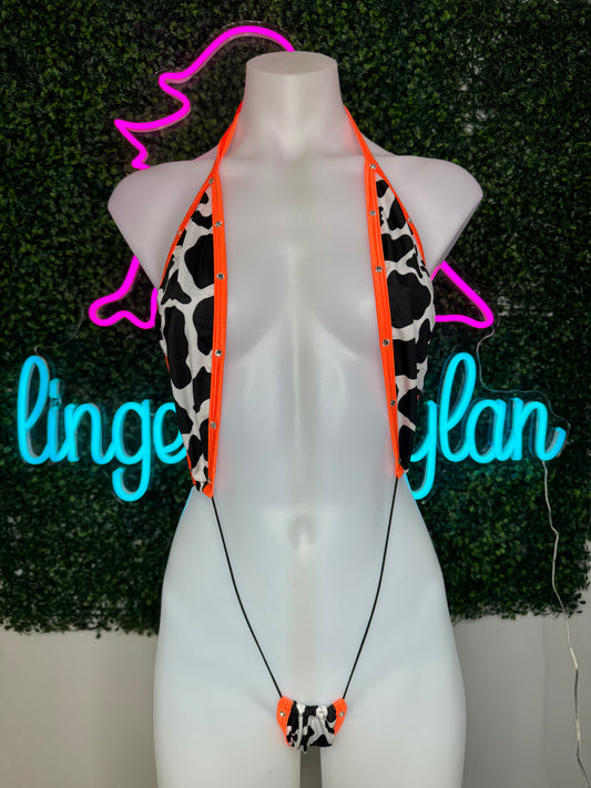 Exotic Dance Wear Cow Print Sling-Shot Outfit Sexy Stripper Outfit