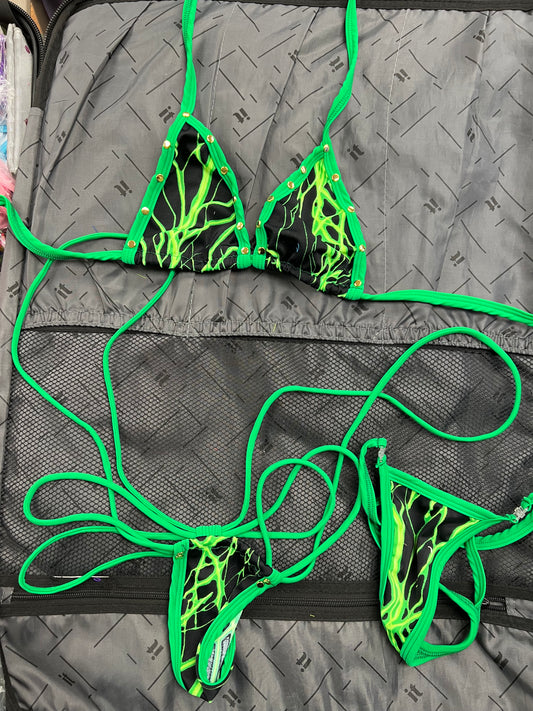 Sling Shot Exotic Dance Wear Set Bikini Outfit Neon Yellow/Brown