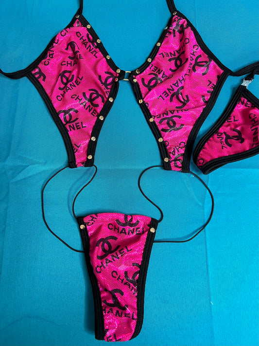 Hot Pink Sling Shot One-Piece Outfit Exotic Dance Wear Premium