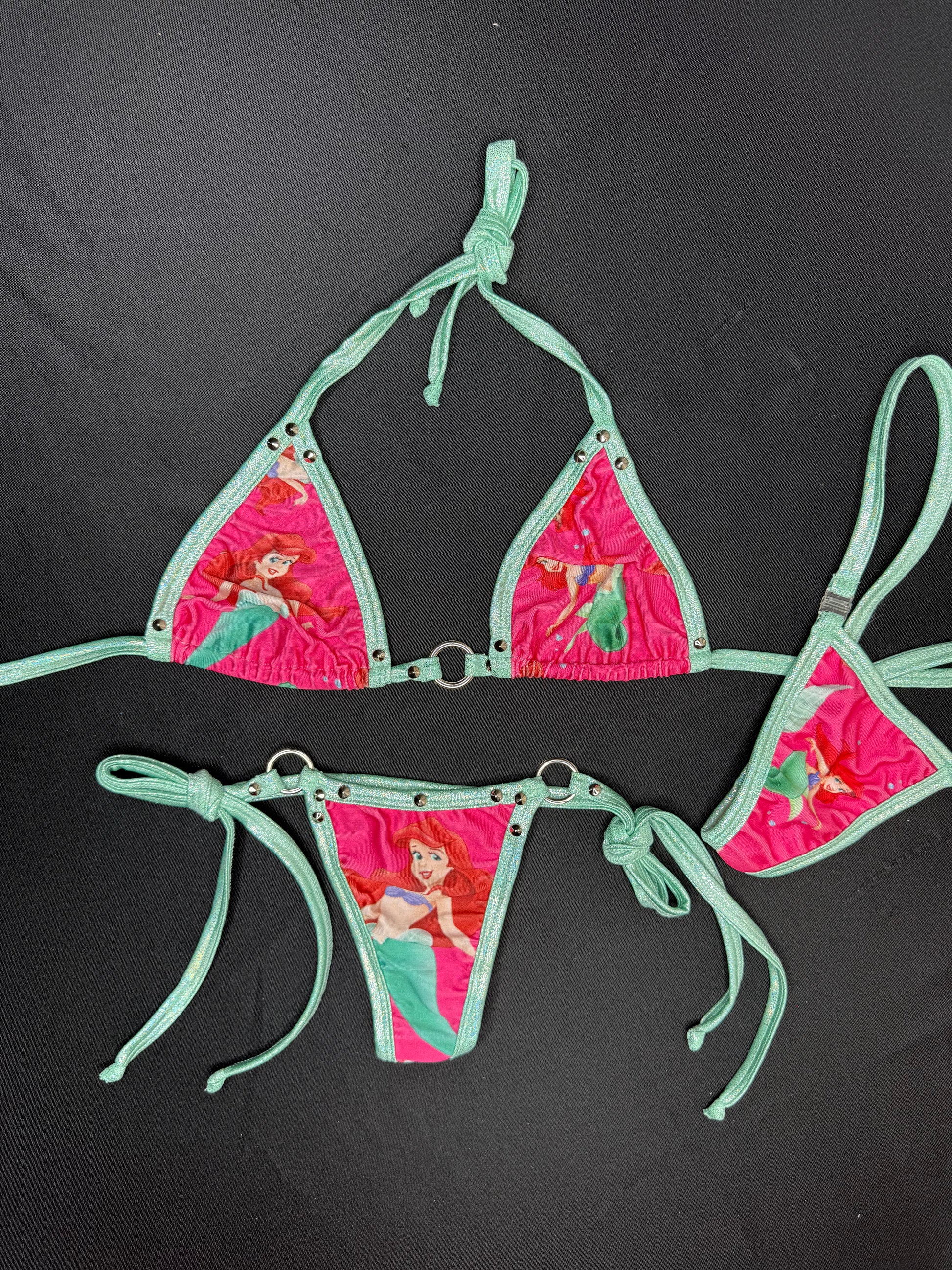 Ariel/Mint Spandex Two-Piece Bikini Lingerie Outfit