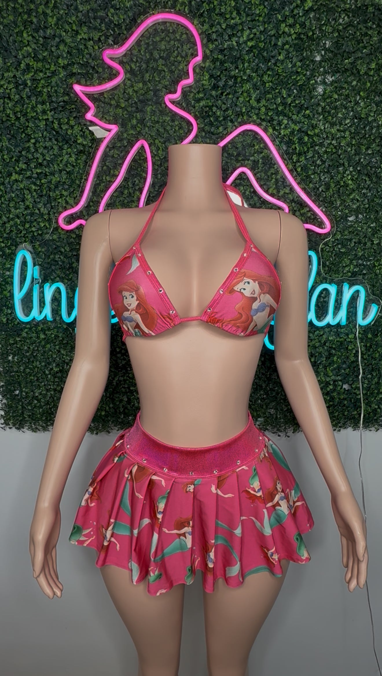 Ariel Print Spandex Bikini Top/Skirt Two-Piece Lingerie Outfit