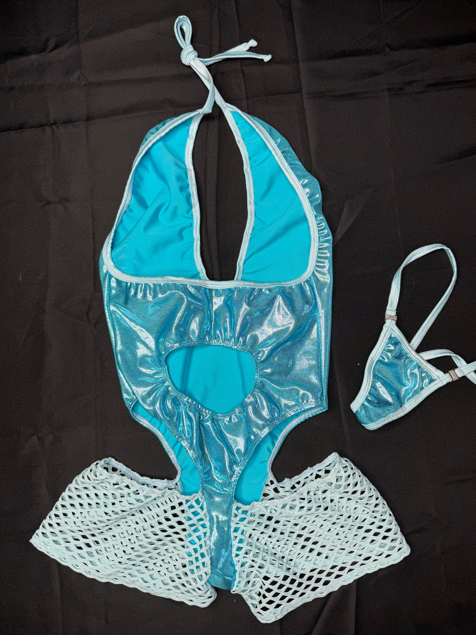 Baby Blue/Baby Blue Fishnet One-Piece Lingerie Outfit