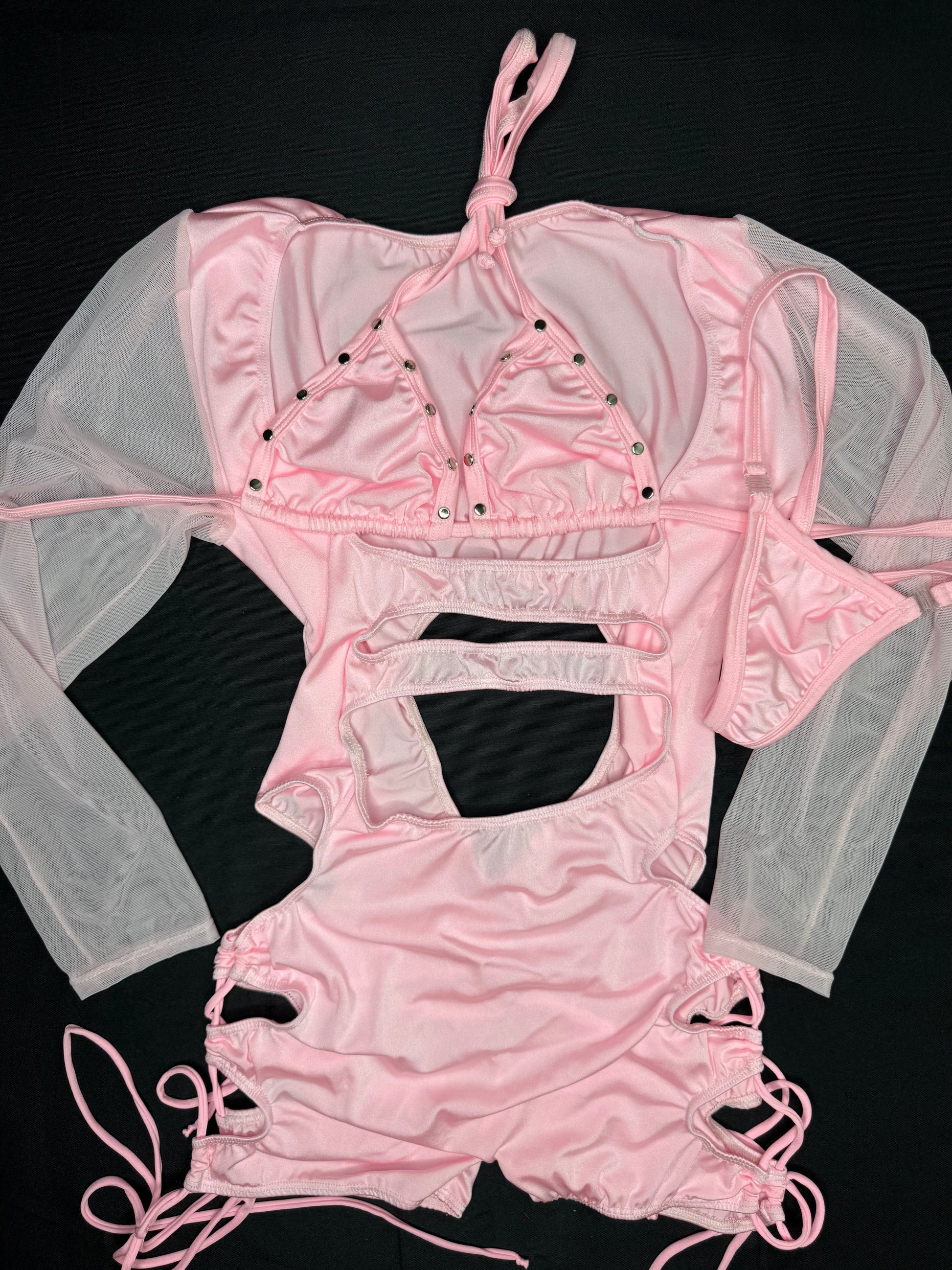 Baby Pink Mesh/Spandex One-Piece Lingerie Outfit