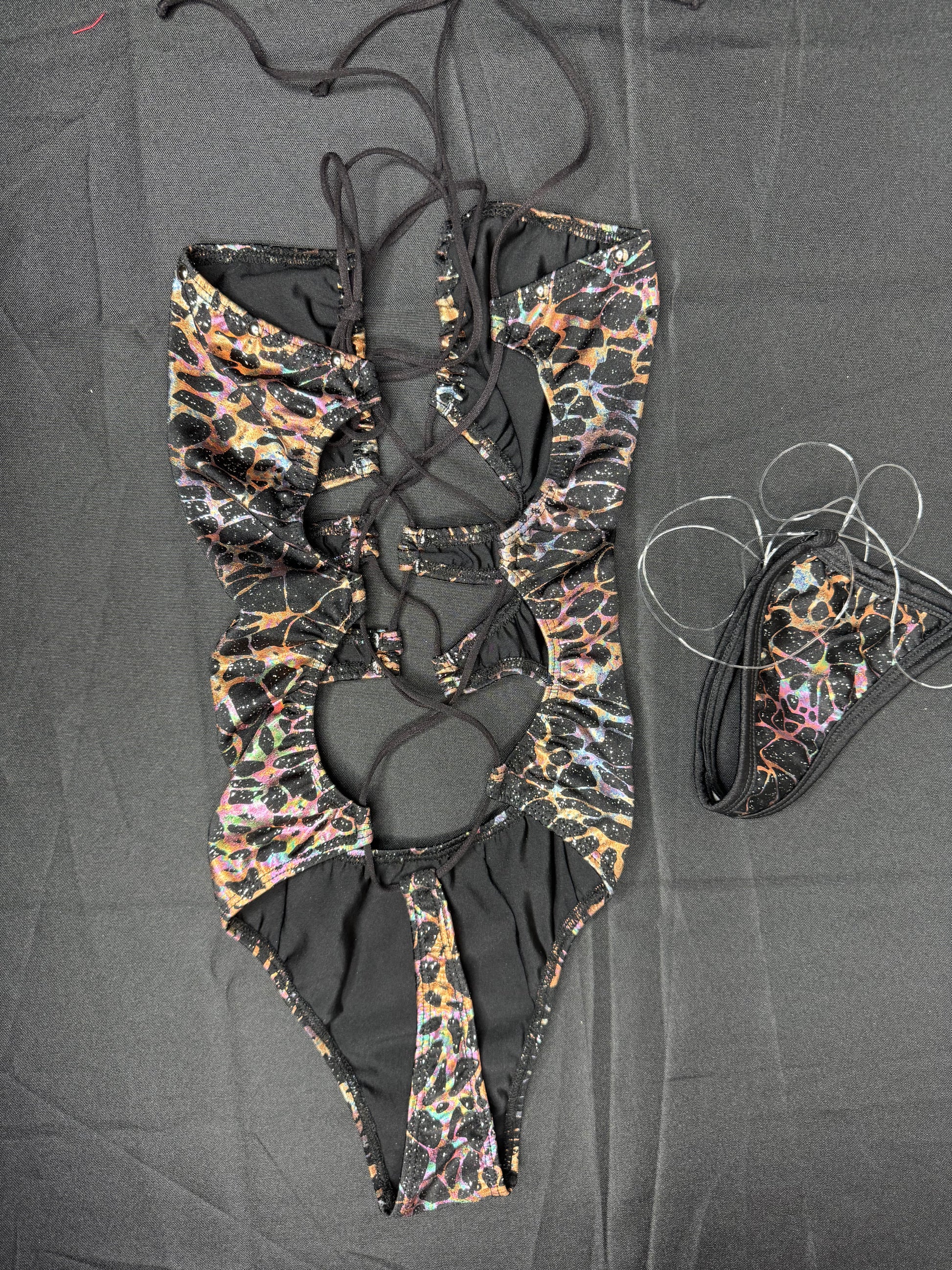 Black Animal Print One-Piece Lingerie Outfit
