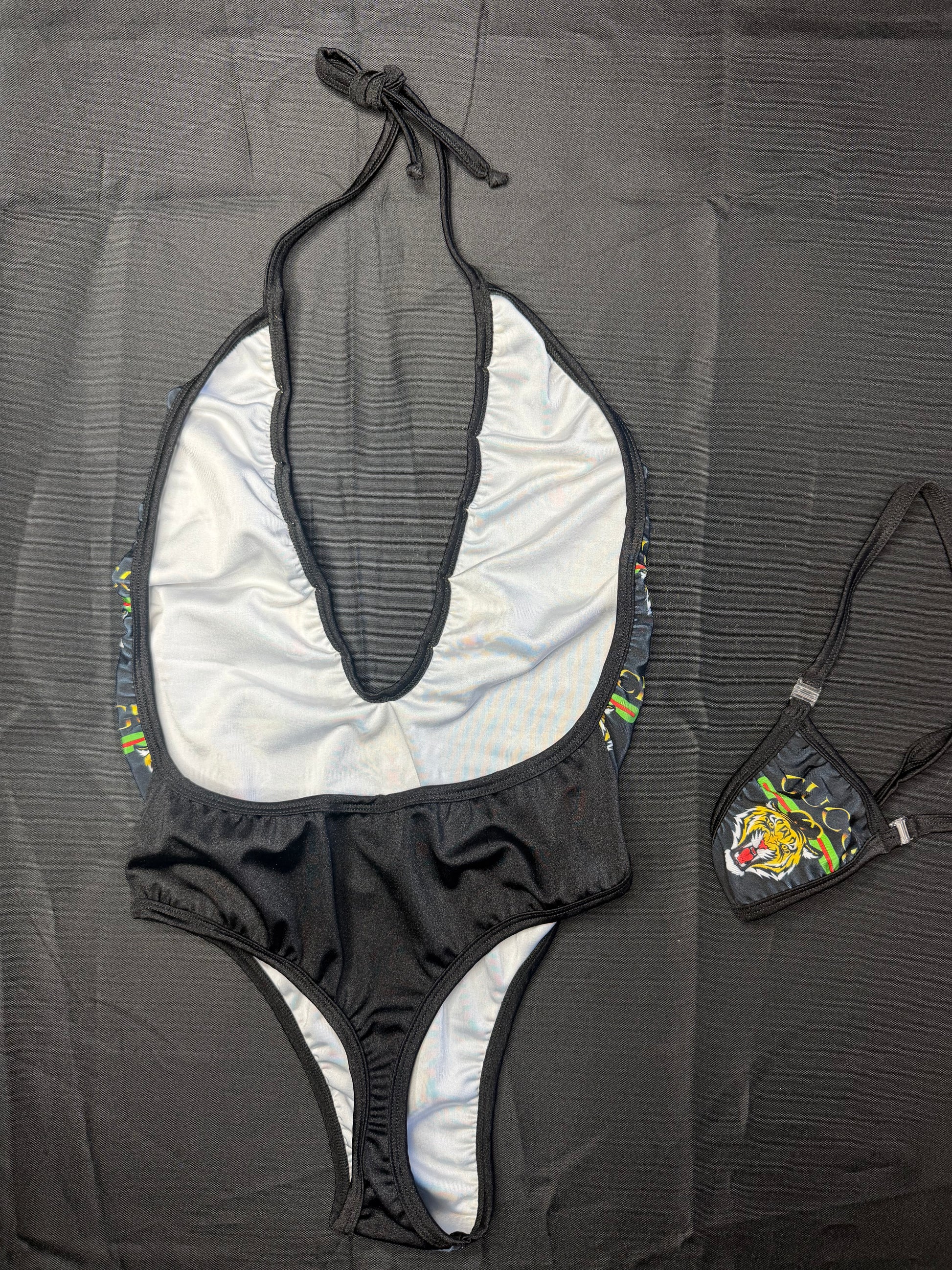 Black Designer Tiger One-Piece Lingerie Outfit