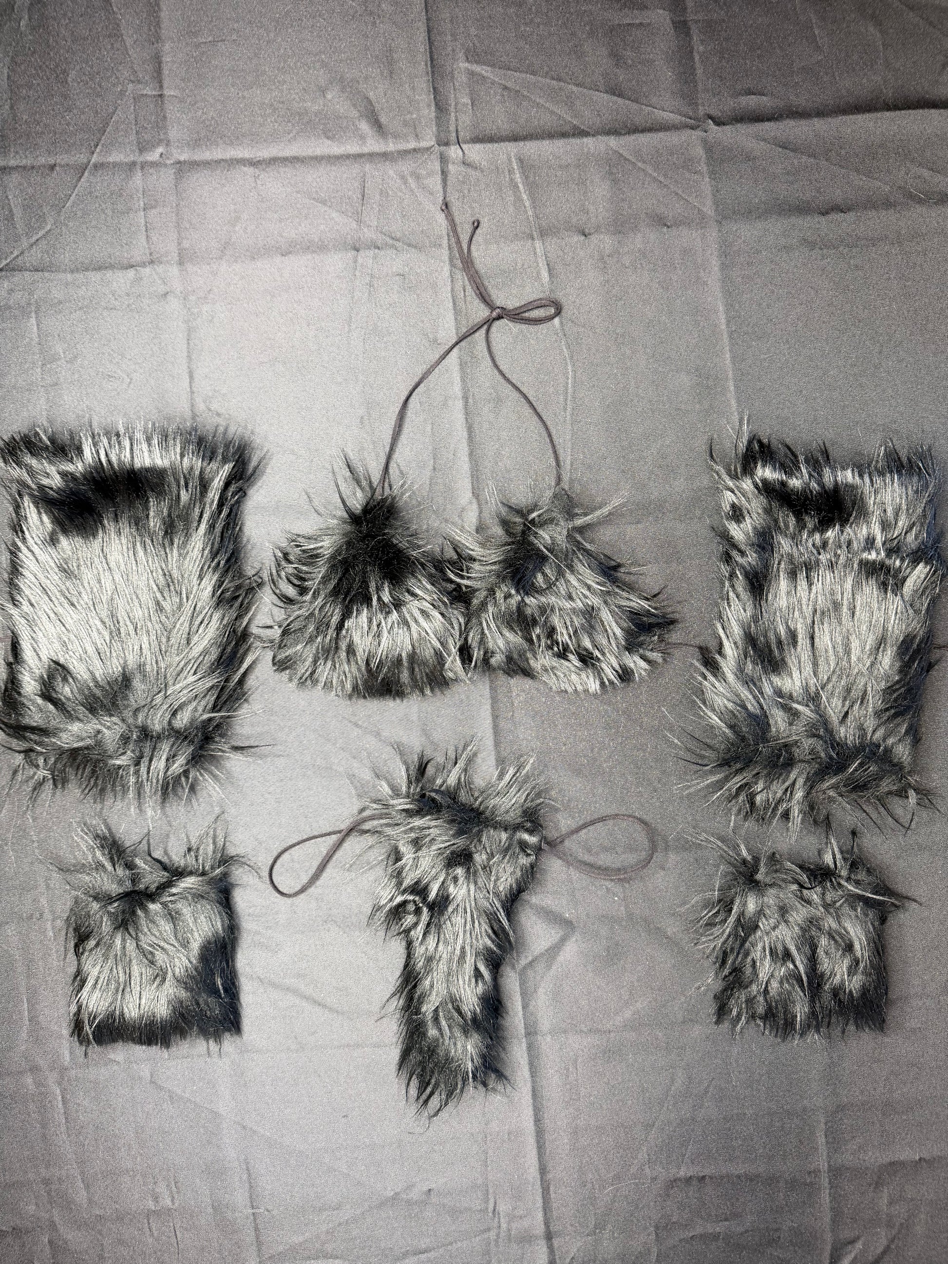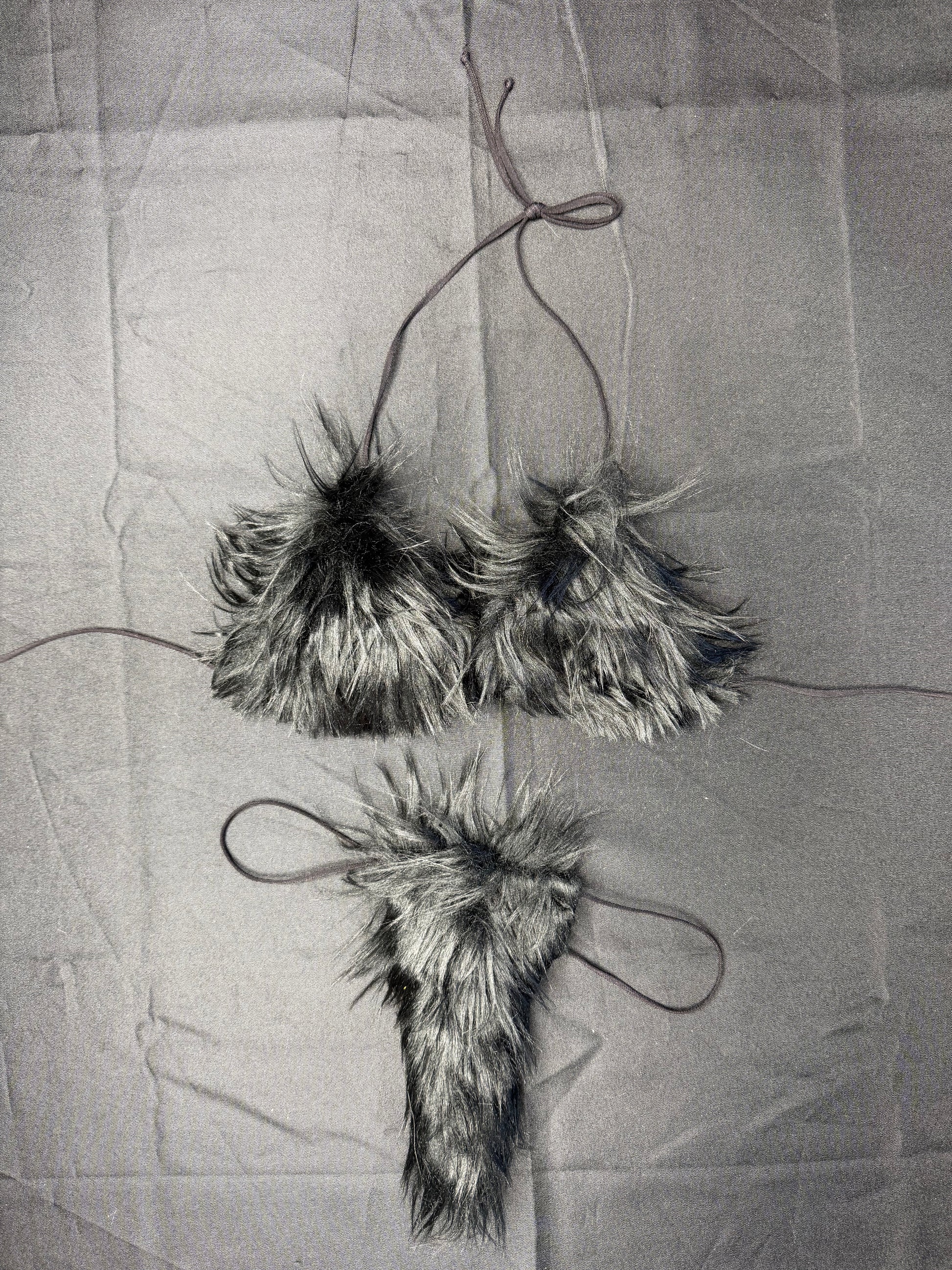 Black Fur Fur 4-Piece Bikini Top/Thong Wrist & Armlet Lingerie Outfit