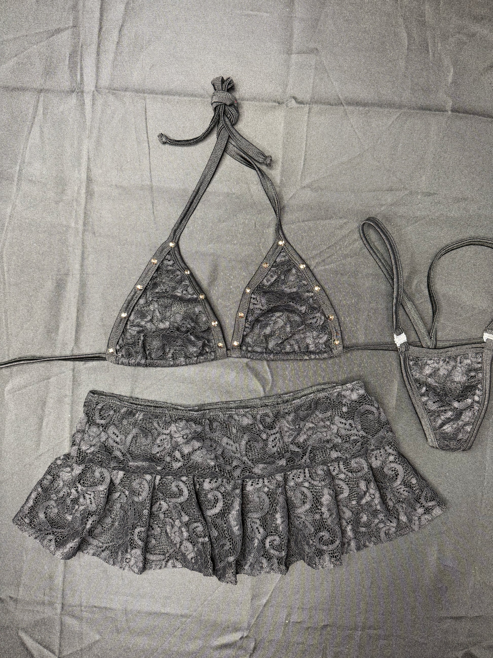 Black Lace Skirt Lingerie Outfit