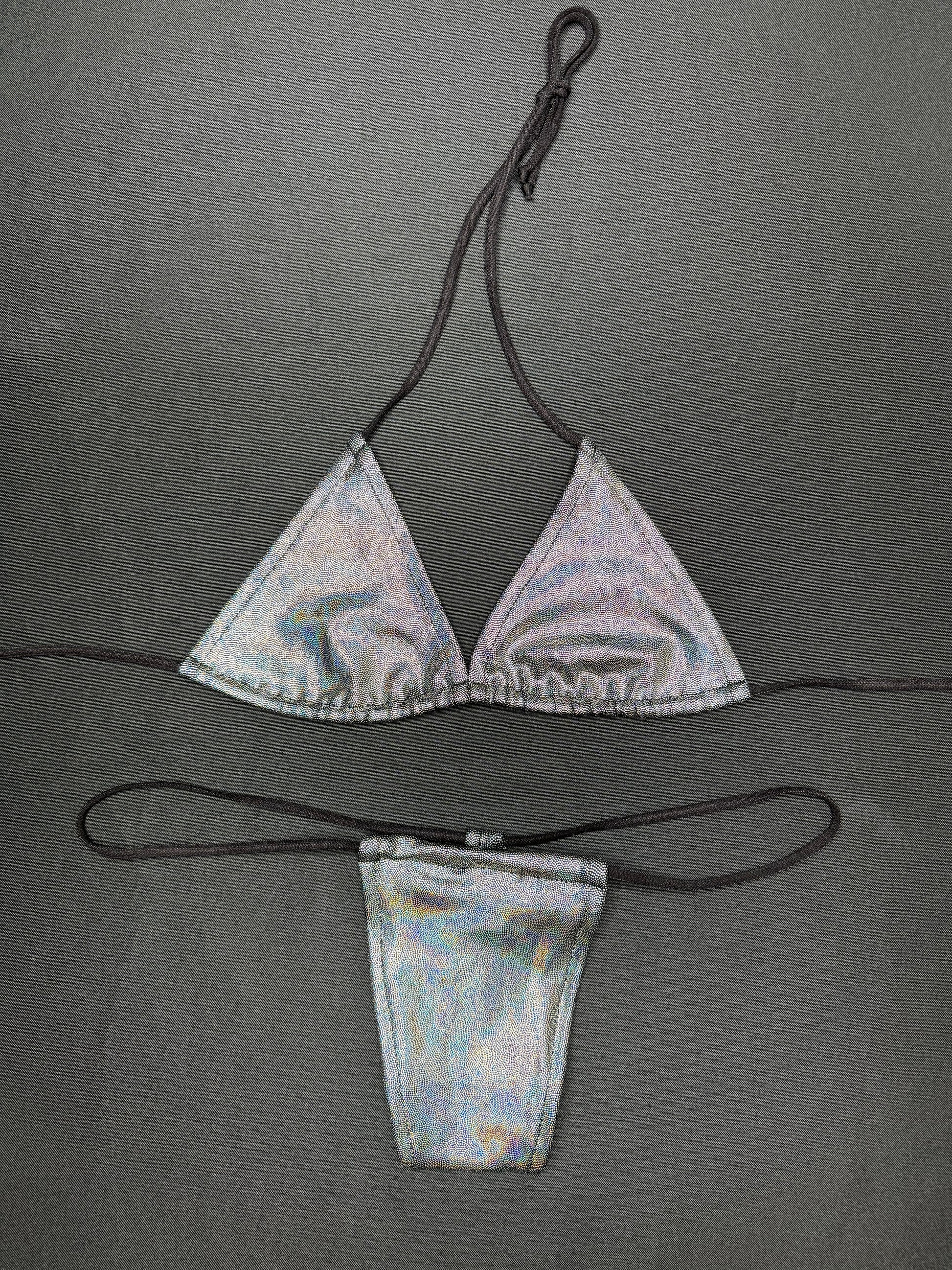 Black Microdot Two-Piece Micro Bikini Lingerie Outfit