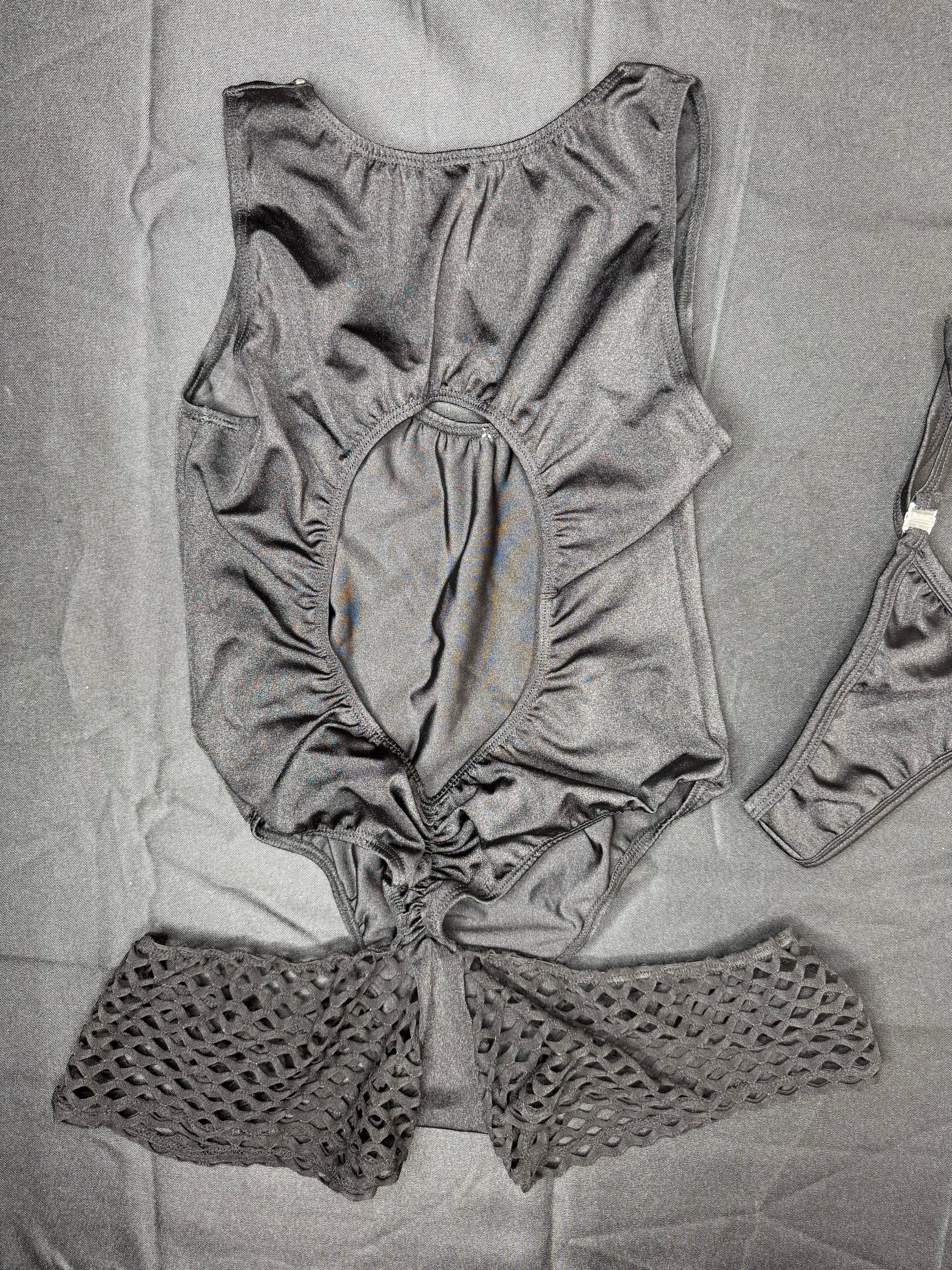 Black Spandex/Fishnet One-Piece Romper Lingerie Outfit