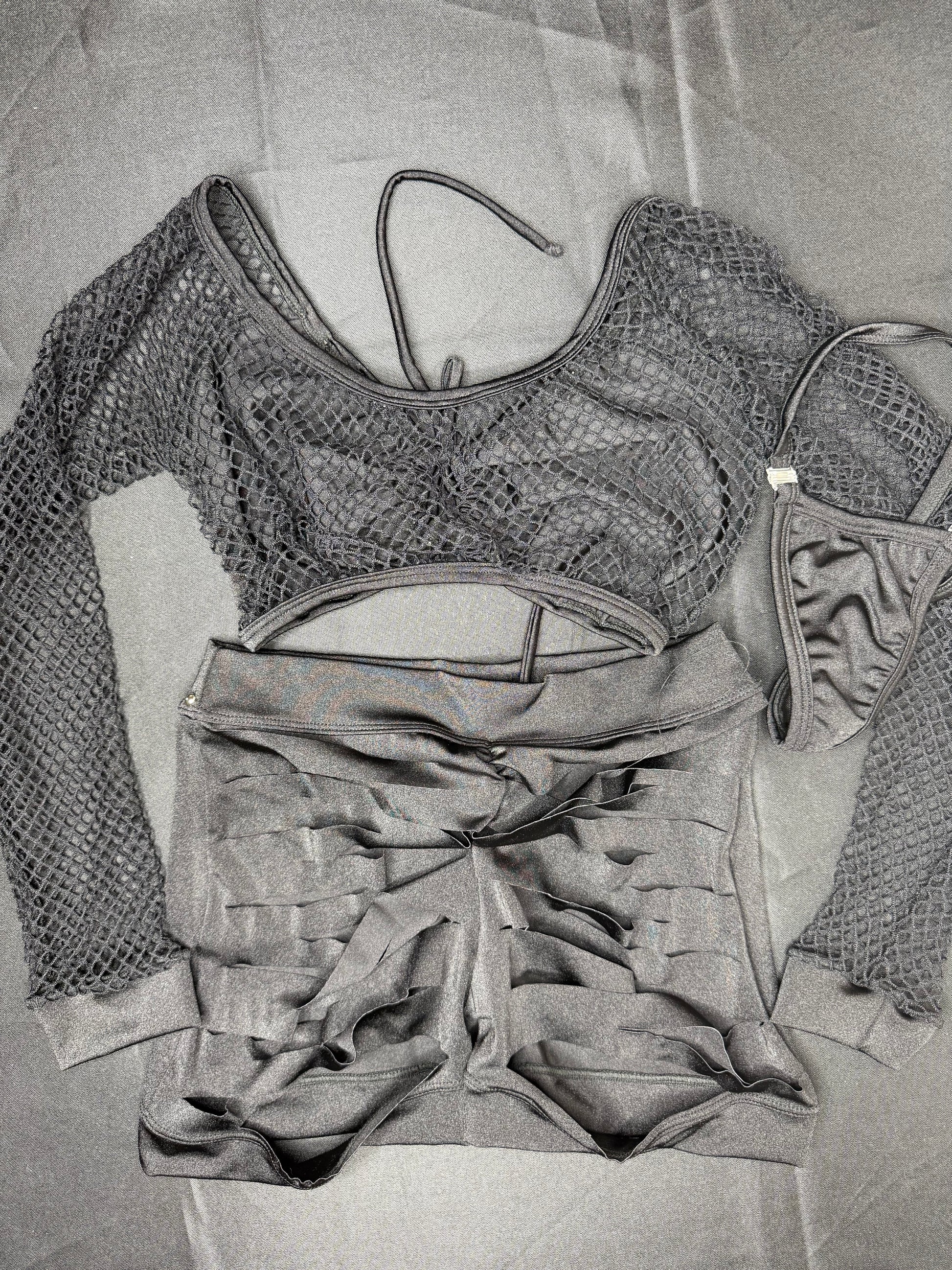 Black Spandex Long Sleeve Top/Ripped Back Shorts Two-Piece Lingerie Outfit