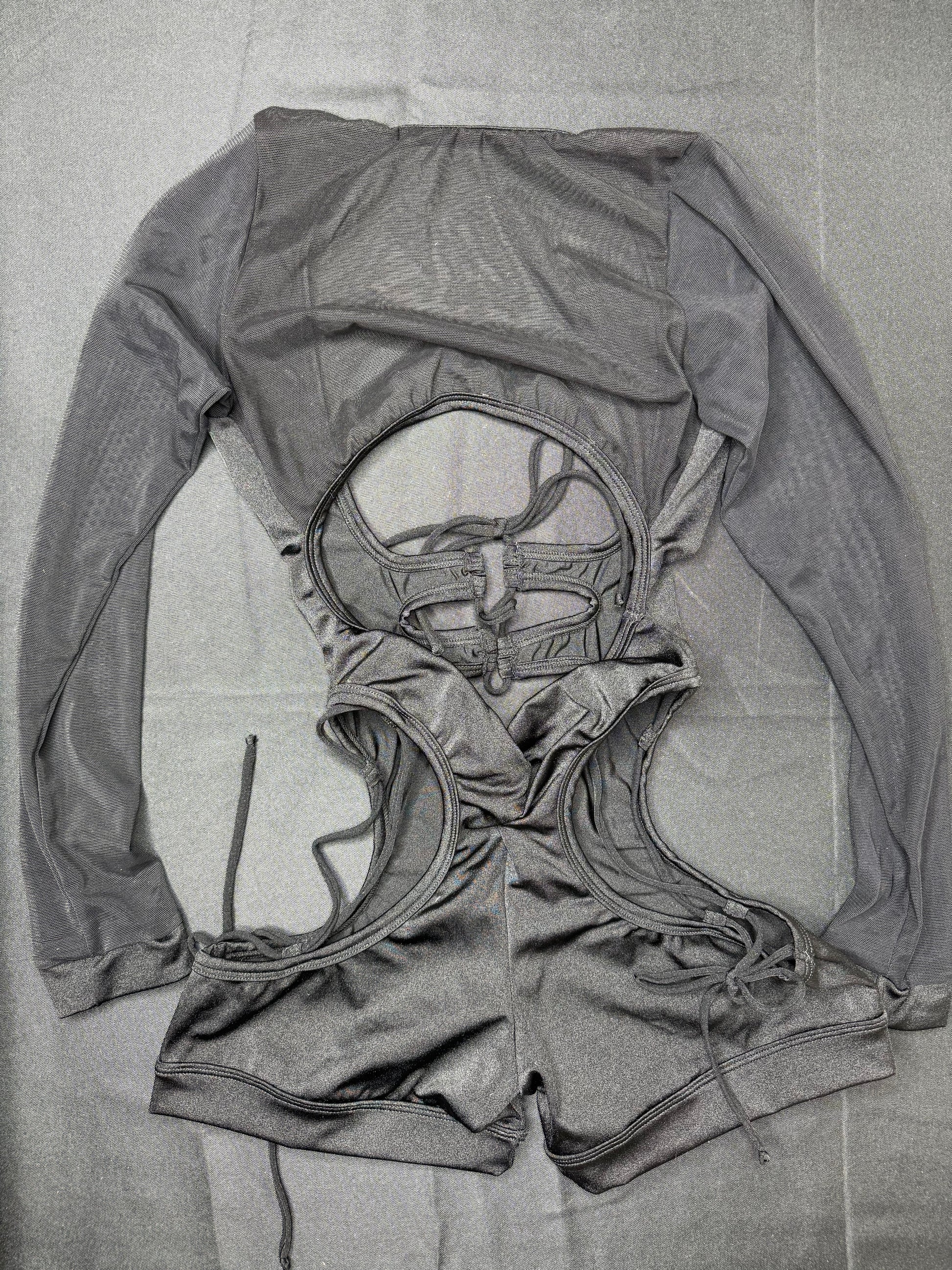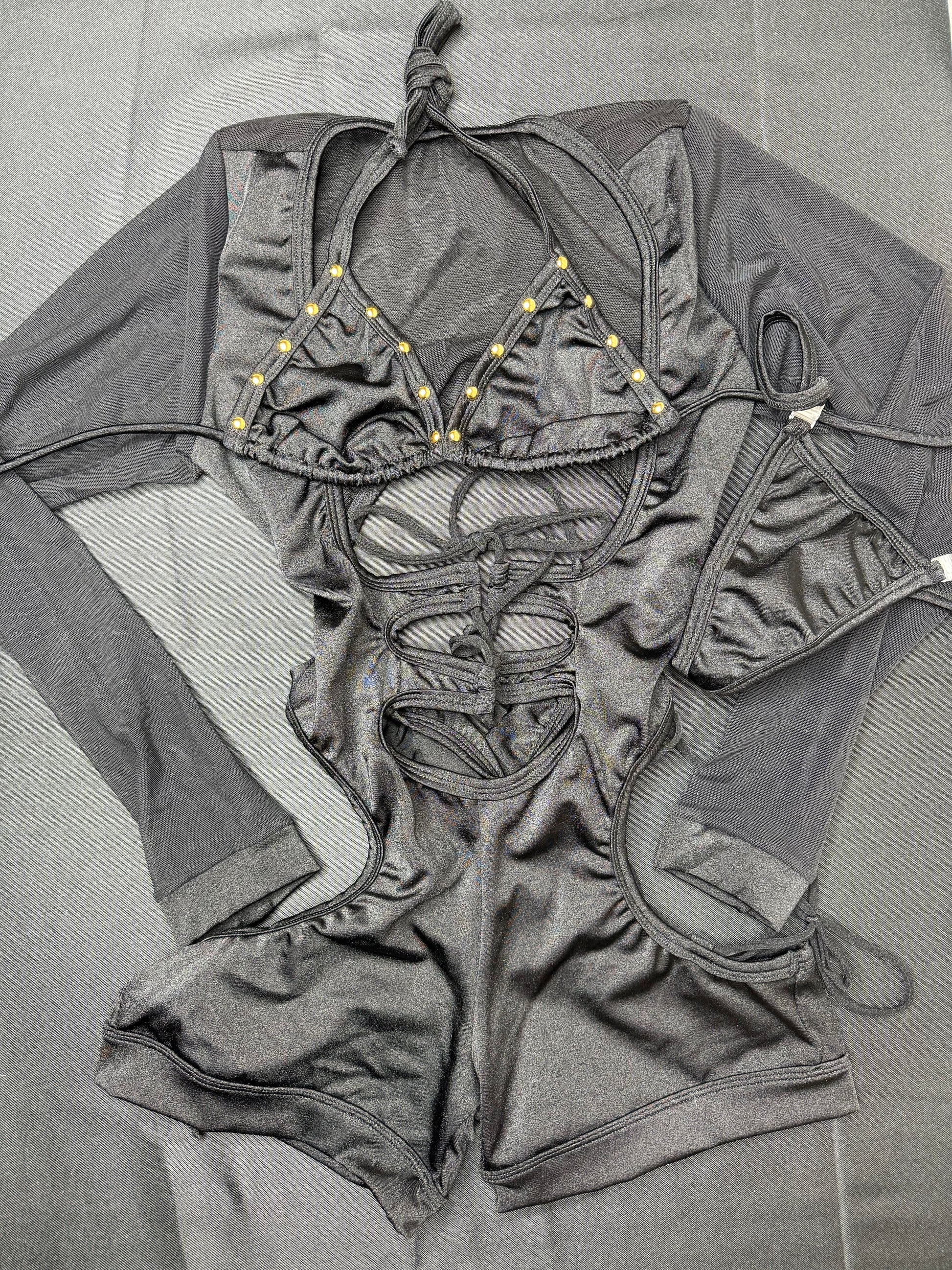 Black Long-Sleeve Mesh Bikini One-Piece Romper Outfit