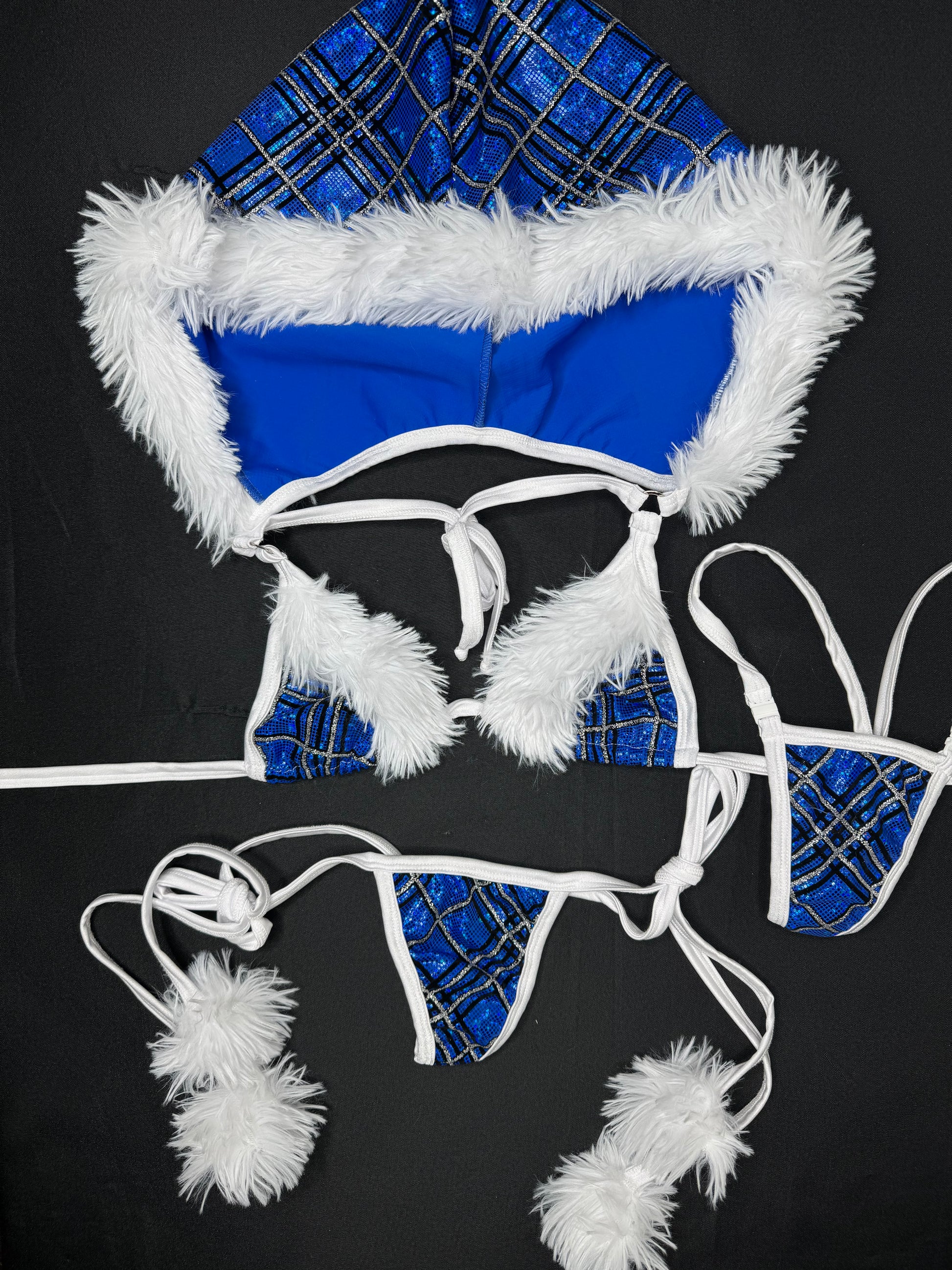 Blue Plaid Bikini Hoodie Two-Piece Lingerie Outfit