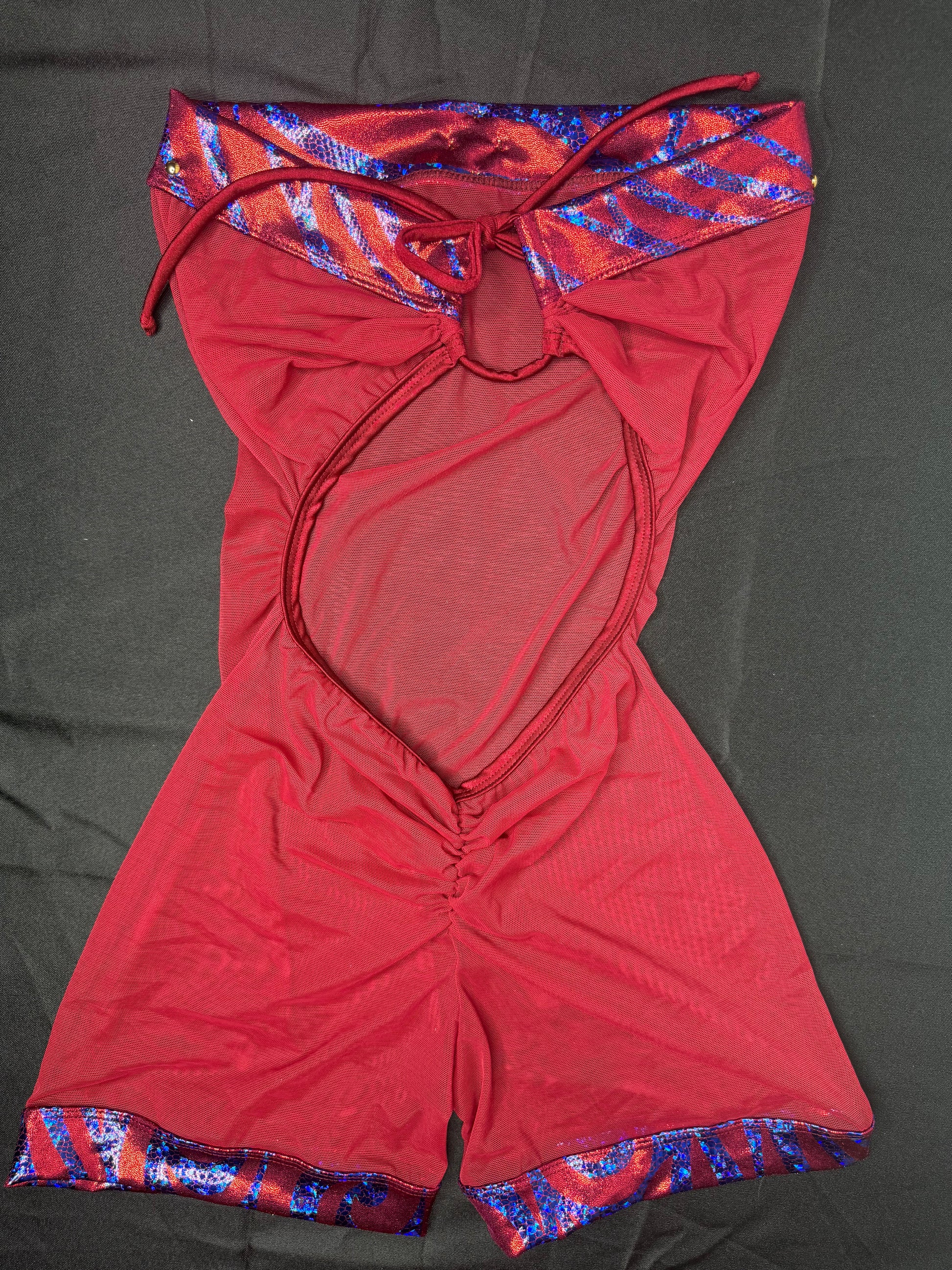 Burgundy Mesh/Spandex One-Piece Lingerie Outfit