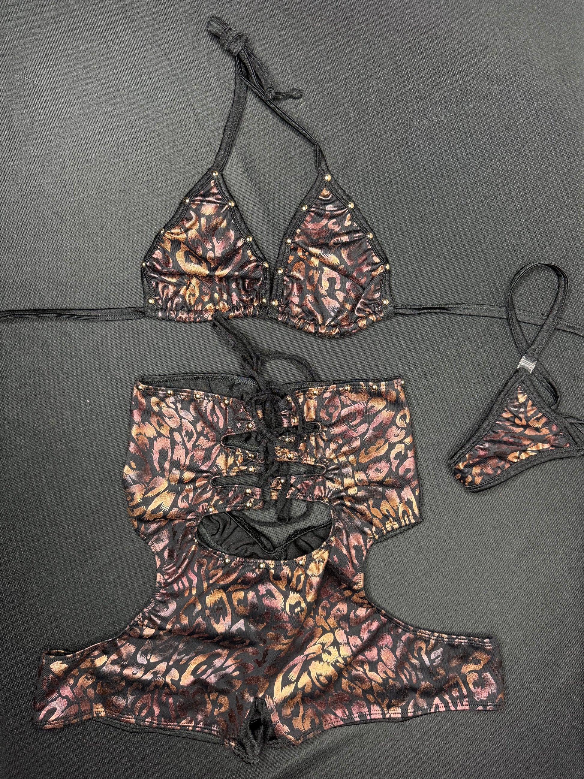 Chocolate/Black Cheetah Animal Print Spandex Two-Piece Bikini Top/Shorts Lingerie Outfit