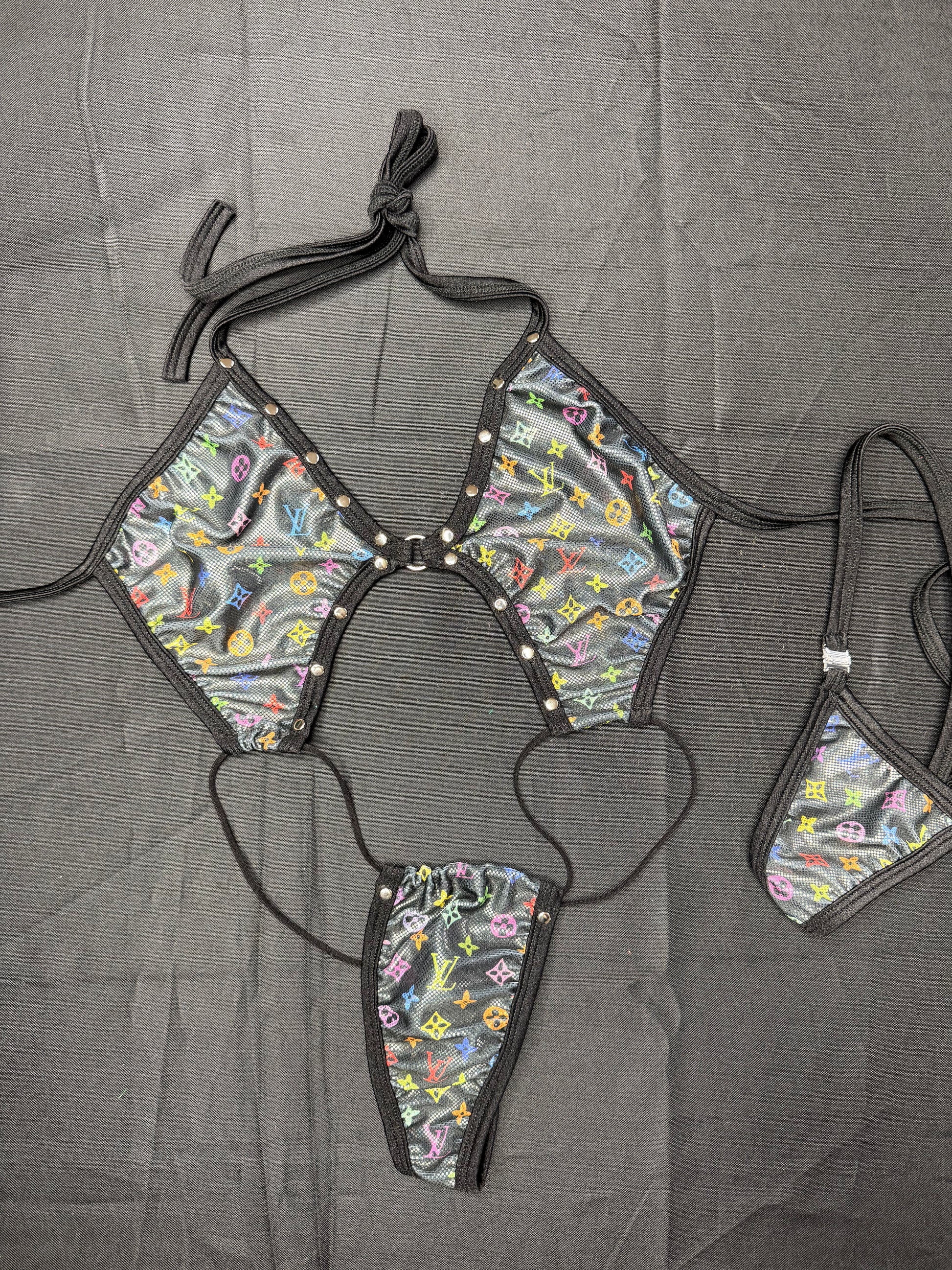 Designer Black Spandex Sling-Shot Lingerie Outfit