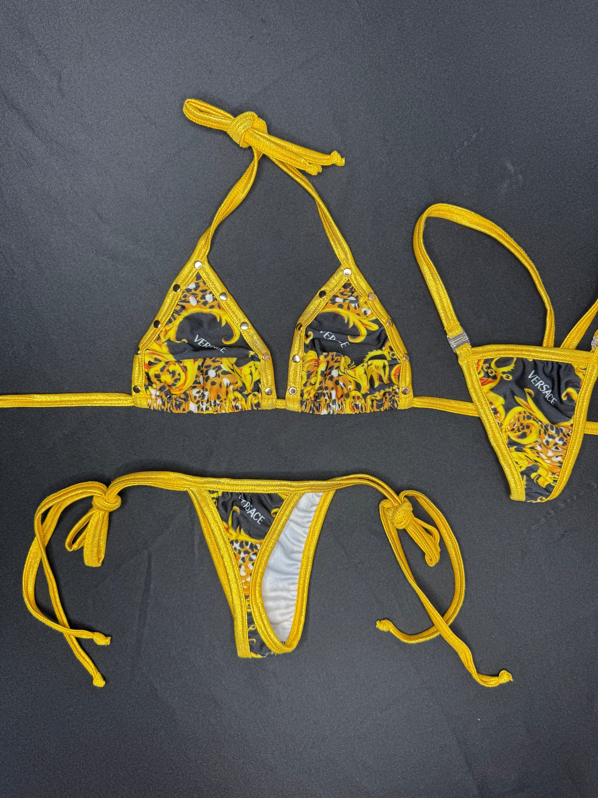 Designer/Gold Spandex Two-Piece Bikini Lingerie Outfit