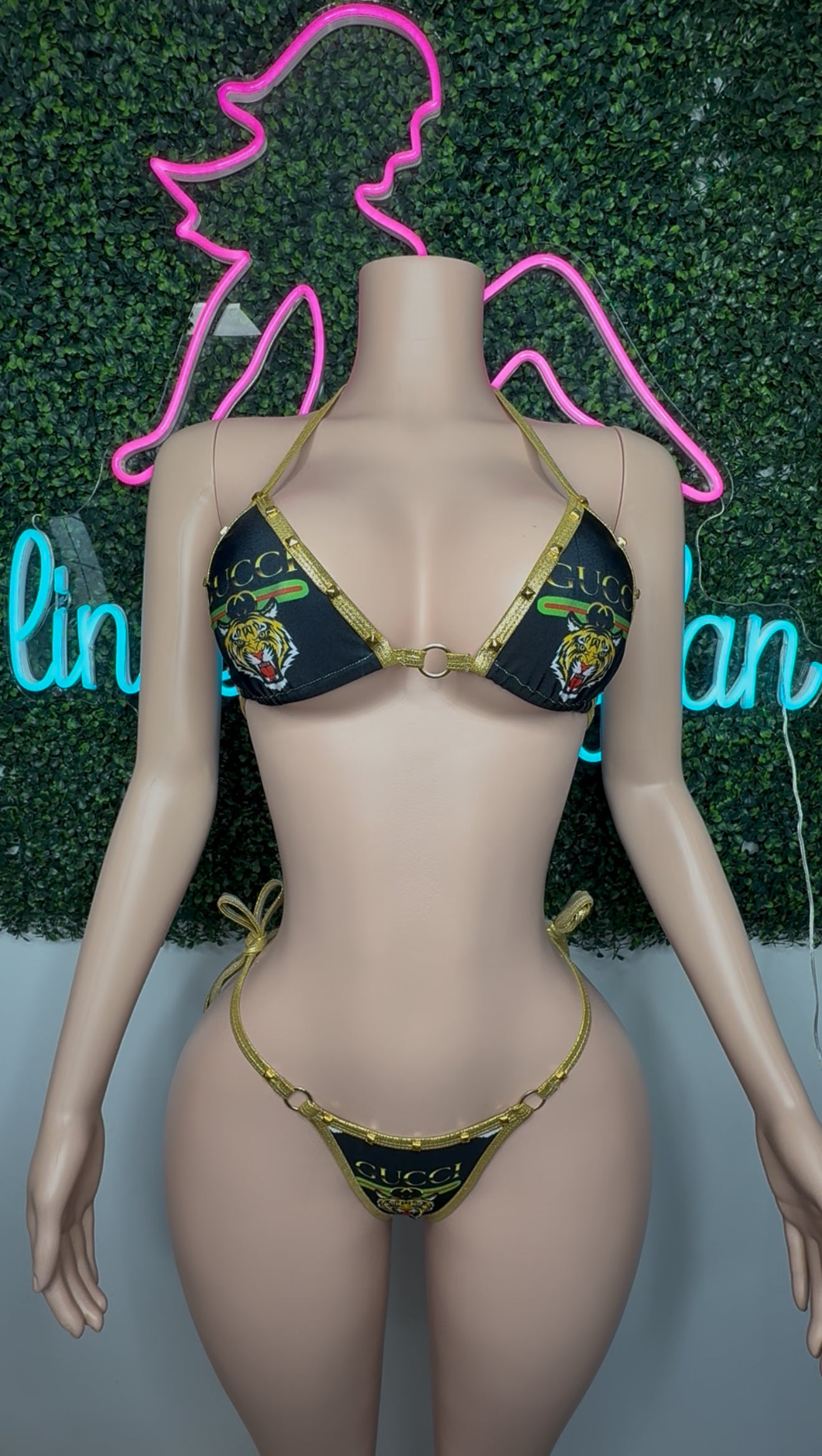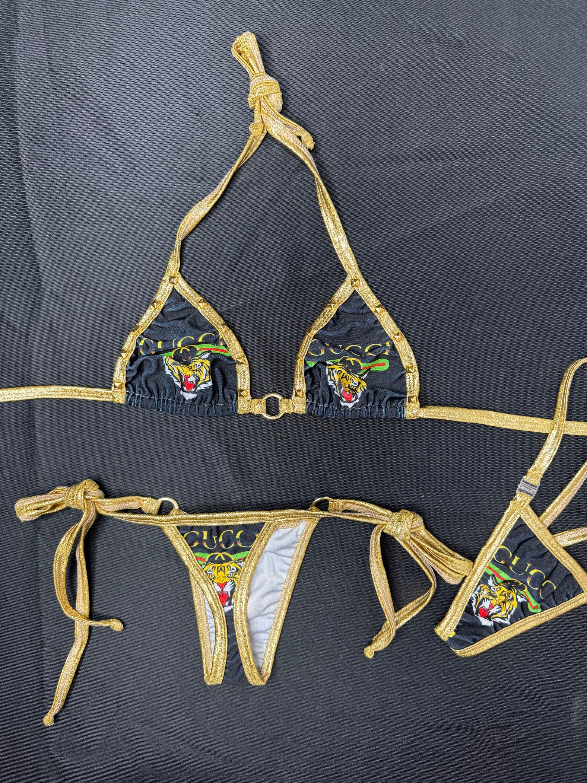 Gold/Designer Tiger Spandex Two-Piece Lingerie Outfit