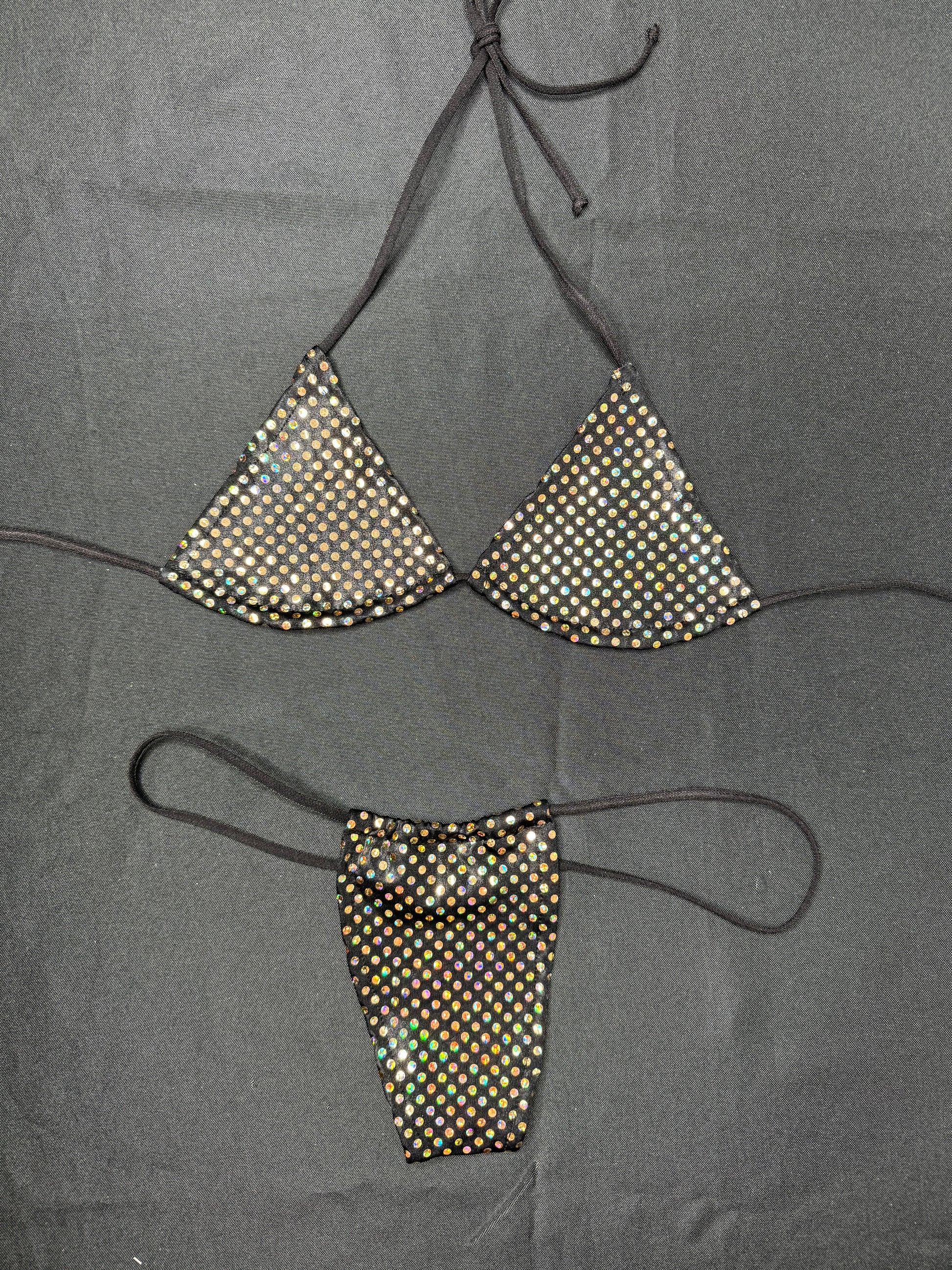 Gold Poke a Dot Two-Piece Micro Bikini Lingerie Outfit