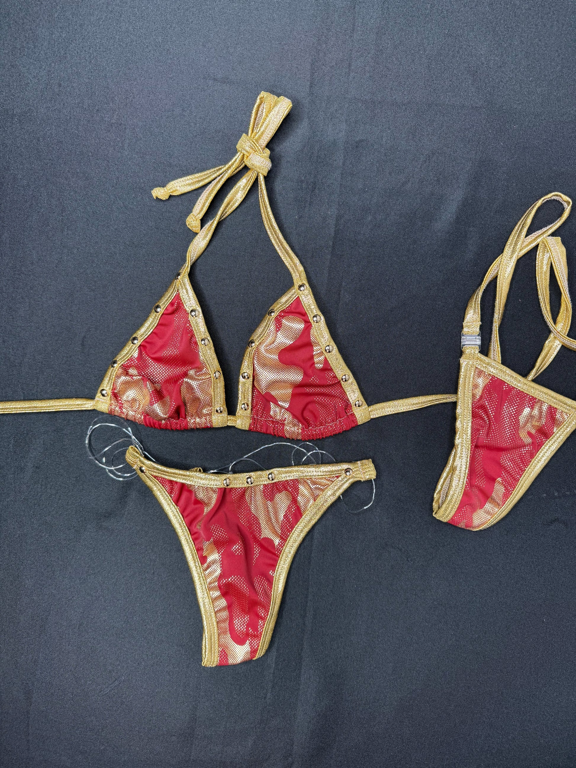 Gold/Red Ombré Two-Piece Bikini Lingerie Outfit