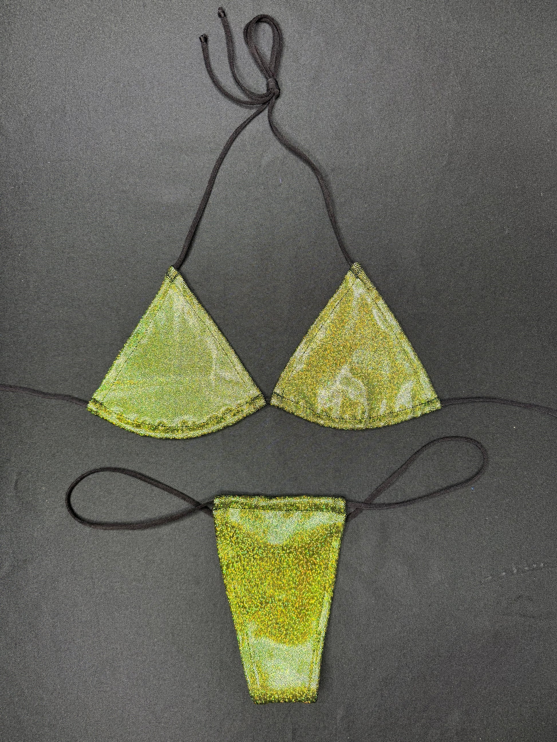 Gold Two-Piece Micro Bikini Lingerie Outfit