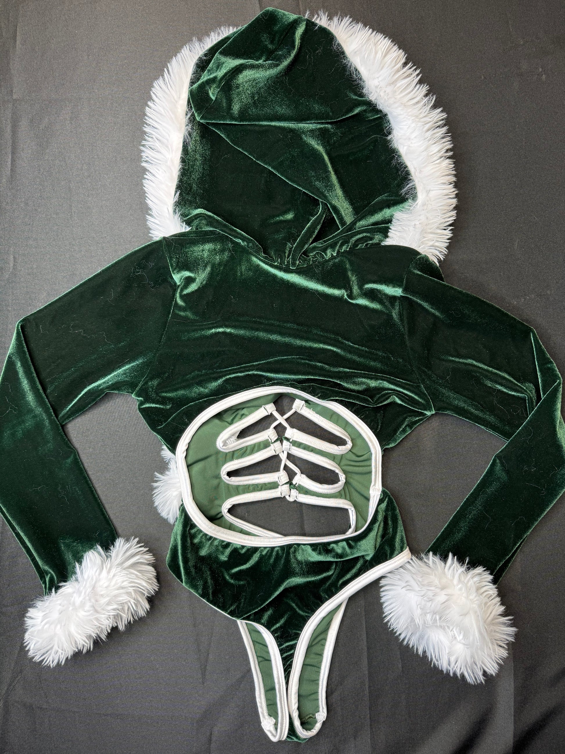 Green Velvet Hoodie One-Piece Leotard Christmas Outfit