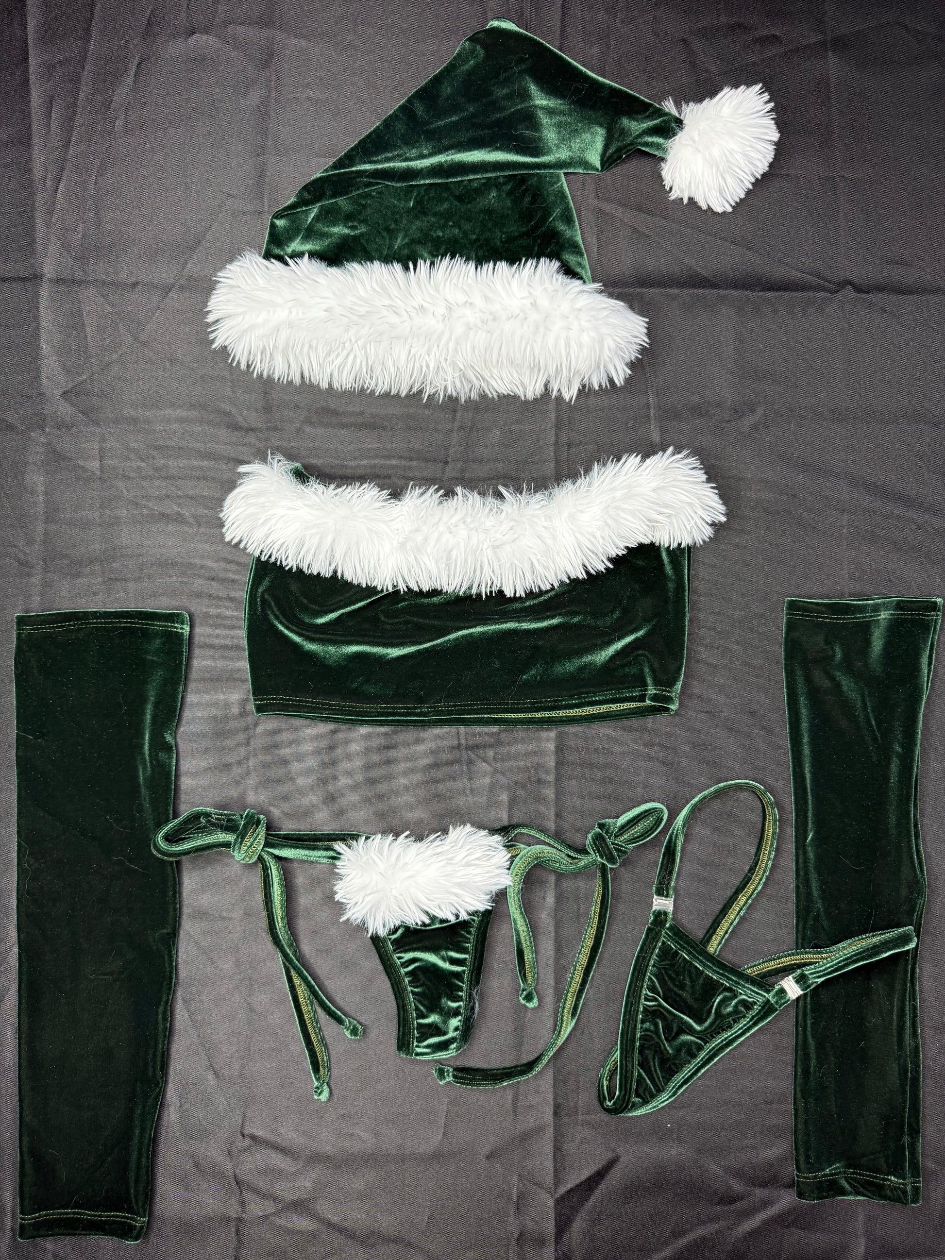 Green Velvet Three-Piece With Hat Christmas Lingerie Outfit