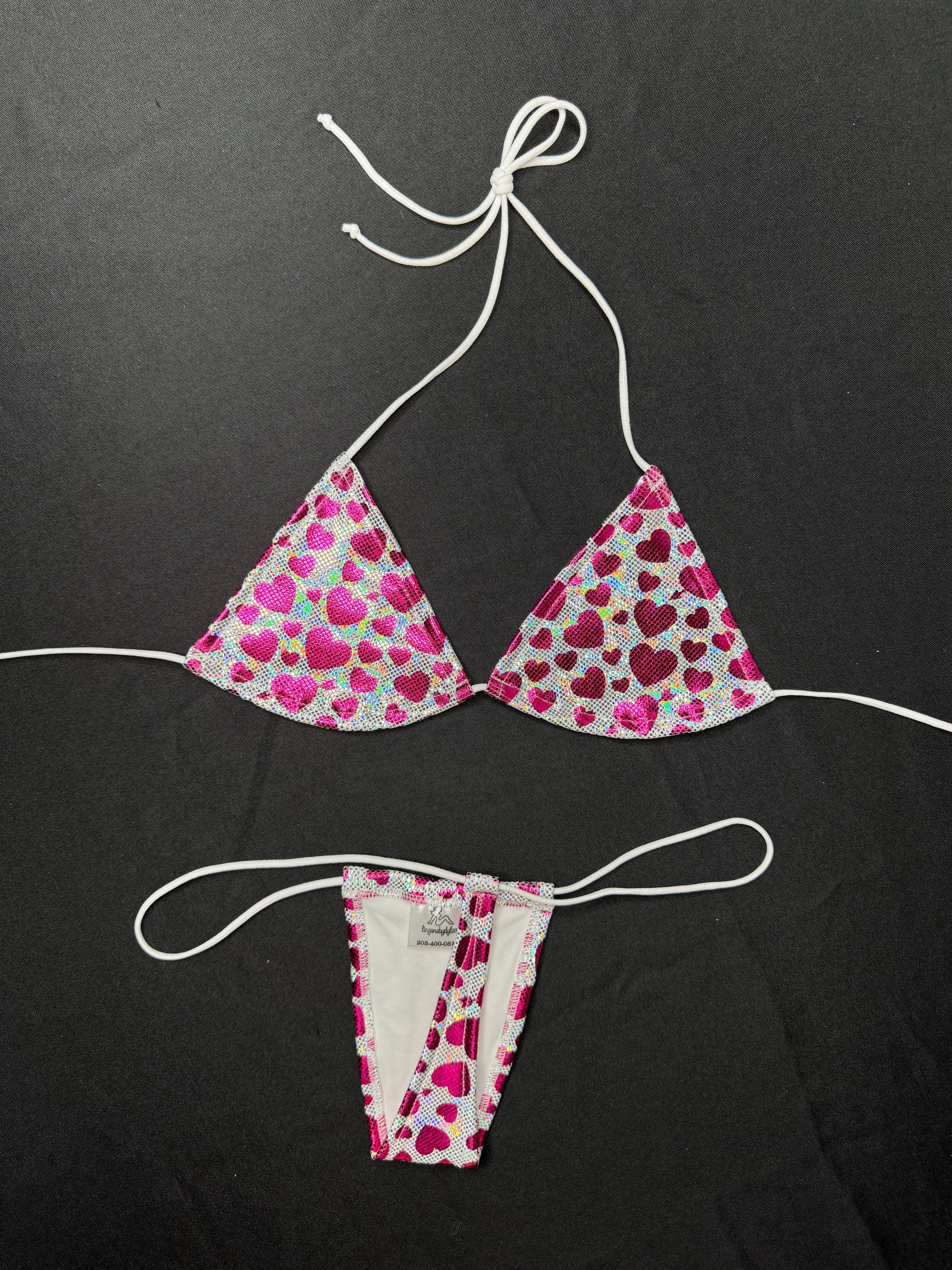 Heart Holographic Two-Piece Micro Bikini Lingerie Outfit